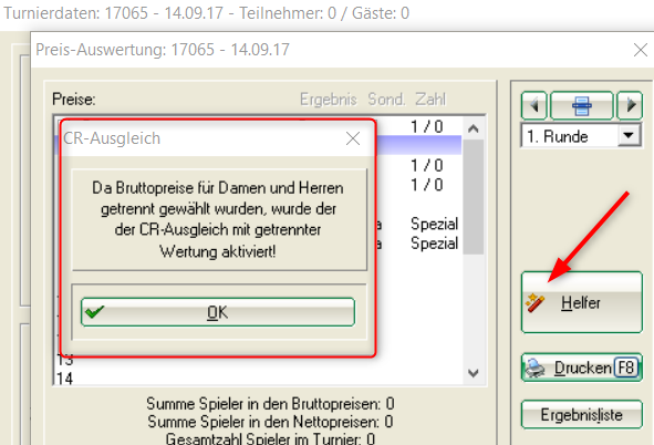 Die Einstellung zum CR-Ausgleich ändert sich automatisch, wenn Sie die Preise mit dem Helfer einstellen.