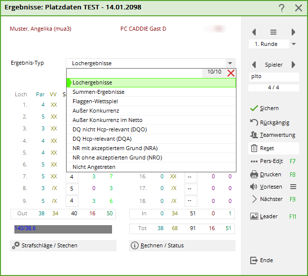 Lassen Sie „nicht gespielte Löcher“ bei der Ergebniseingabe leer, PC CADDIE berechnet den GBE/AGS (Gewertetes Bruttoergebnis, bzw Adjusted Gross Score) automatisch!