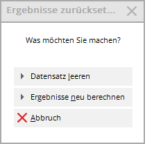 Wenn Sie Reset betätigen, haben Sie zwei Optionen: