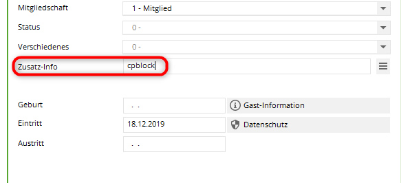 Tragen Sie in der Person die Zusatzinfo ein: cpblock