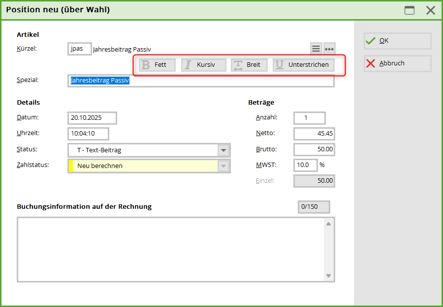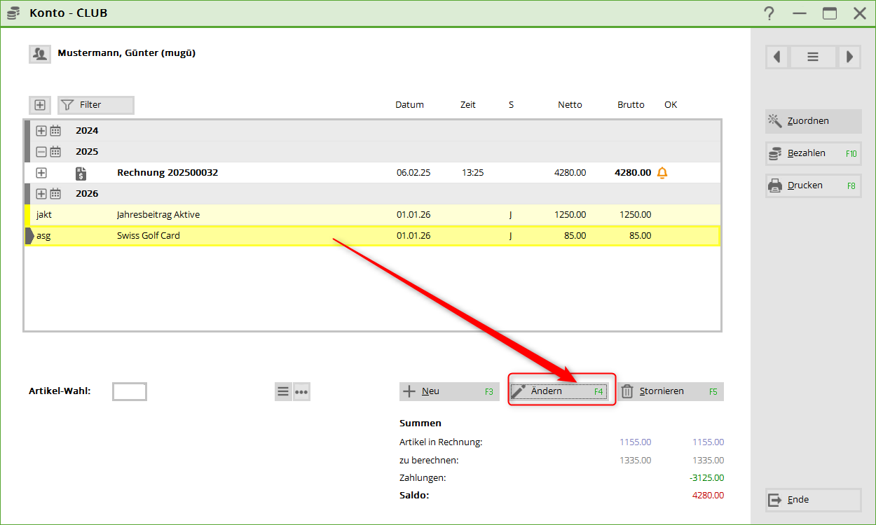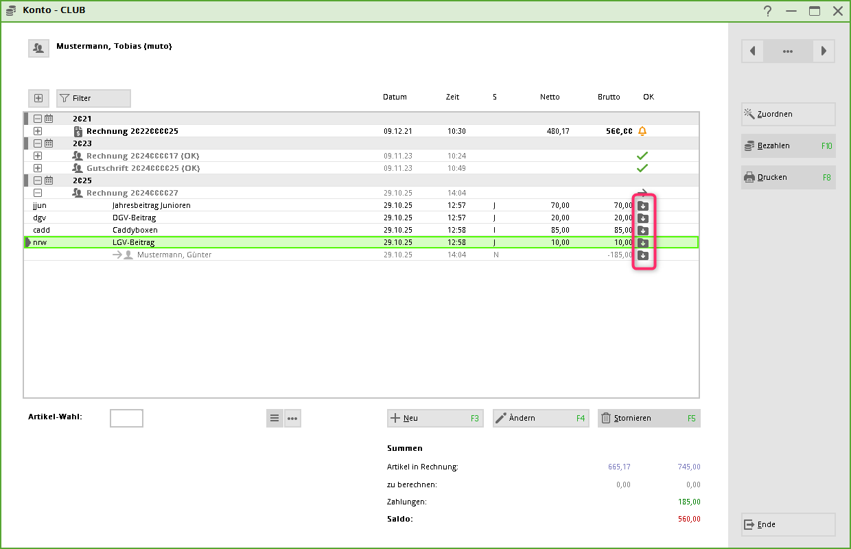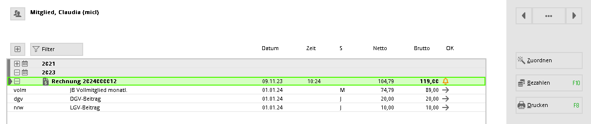 TIPP: Dies ist gleichzeitig eine gute Kontrolle, ob das neue Mitglied für die nächsten Jahresrechnungen passend eingestellt ist.