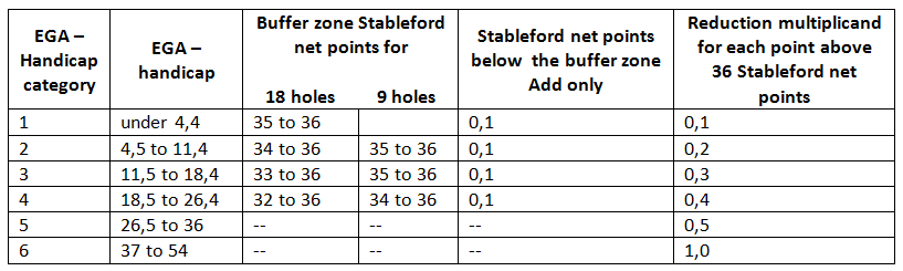 From 2018, the handicap system will be adjusted so that handicap class 4 (EGA handicap 18.4 to 26.4) will be raised for handicap-effective competition results.