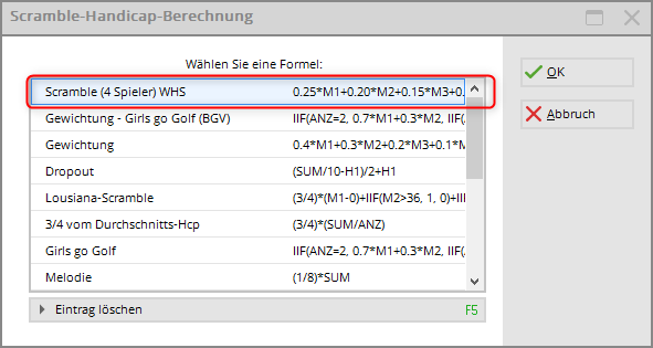 For the scramble e.g. in the 4-man game, the recommended formula is