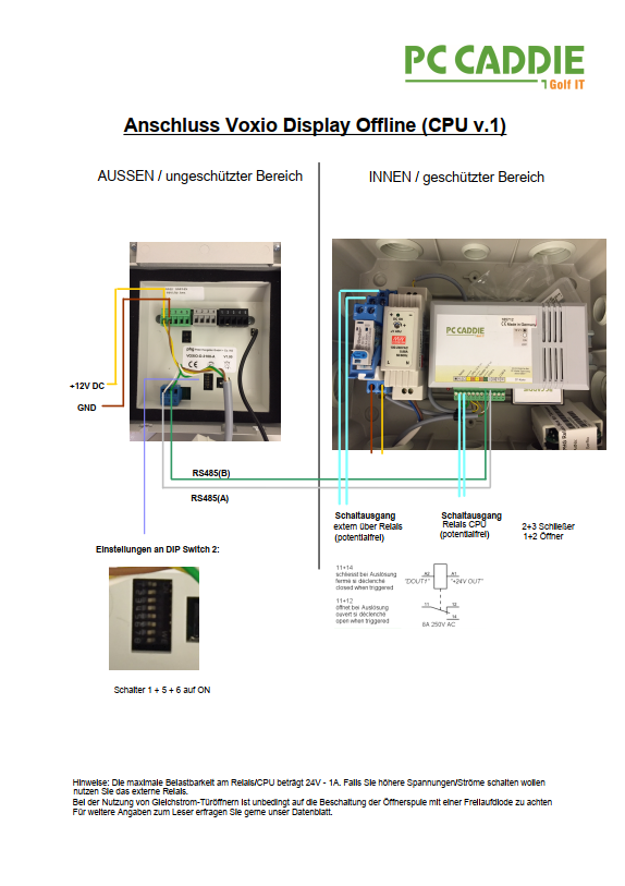 Beachten Sie bitte bzgl. Relais: die maximale Kontaktbelastbarkeit liegt bei 24V / 2 A (ohmsche Last)!