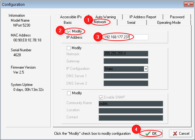 Nach Möglichkeit ist die IP-Adresse für die MOXAs bereits bei der Bestellung anzugeben, sodass sie noch vor dem Versand eingestellt werden kann.
