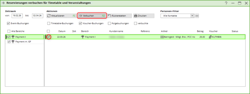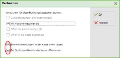 Mit der Funktion Event-Anmeldungen verbuchen können Sie die Voucher verbuchen.