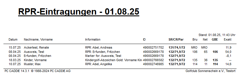 Es ist auch mit WHS jetzt möglich, eine RPR Liste zu drucken, natürlich nur für RPR Runden, die in Ihrem Club stattgefunden haben. Für auswärtige Runden Ihrer Mitglieder finden Sie die Ergebnisse nur im Scoring Record, der beim DGV geführt ist. Wir öffnen nur den Link zum DGV.