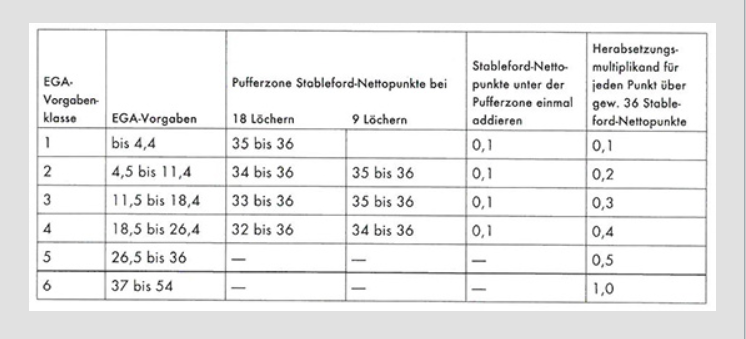 Ab 2018 wird das Vorgabensystem dahingehend angepasst, dass die Vorgabenklasse 4 (EGA-Vorgabe 18.4 bis 26.4) bei vorgabenwirksamen Wettspielergebnissen hochgesetzt wird.