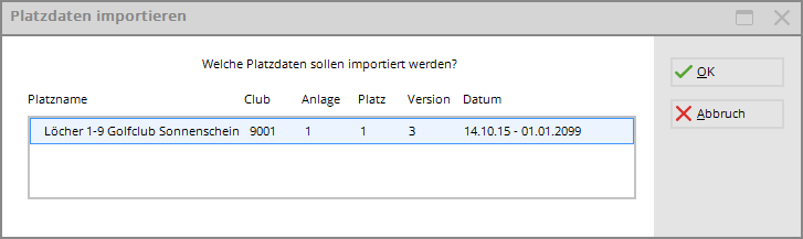 Die Platzdaten haben dann ein Gültigkeitsdatum. Wettspiele sind nur möglich mit Platzdatensätzen, die ein Gültigkeitsdatum haben!