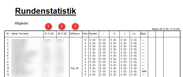 Nutzen Sie den Druck der Rundenstatistik über Handicaps-Rundenstatistik