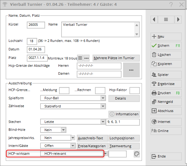 Für den Fourball achten Sie bitte zukünftig wie bei Einzel auf die HCPI Relevanz Einstellung: