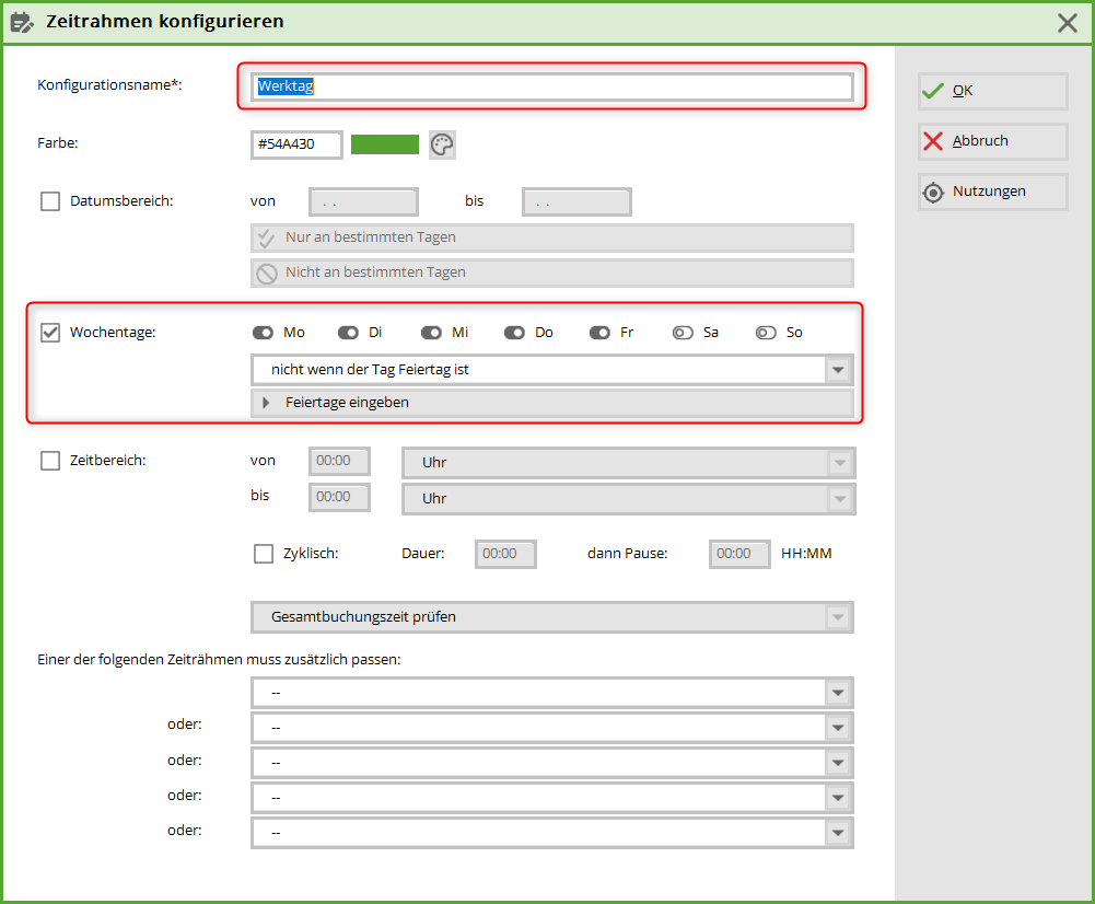 Zeitrahmen anlegen