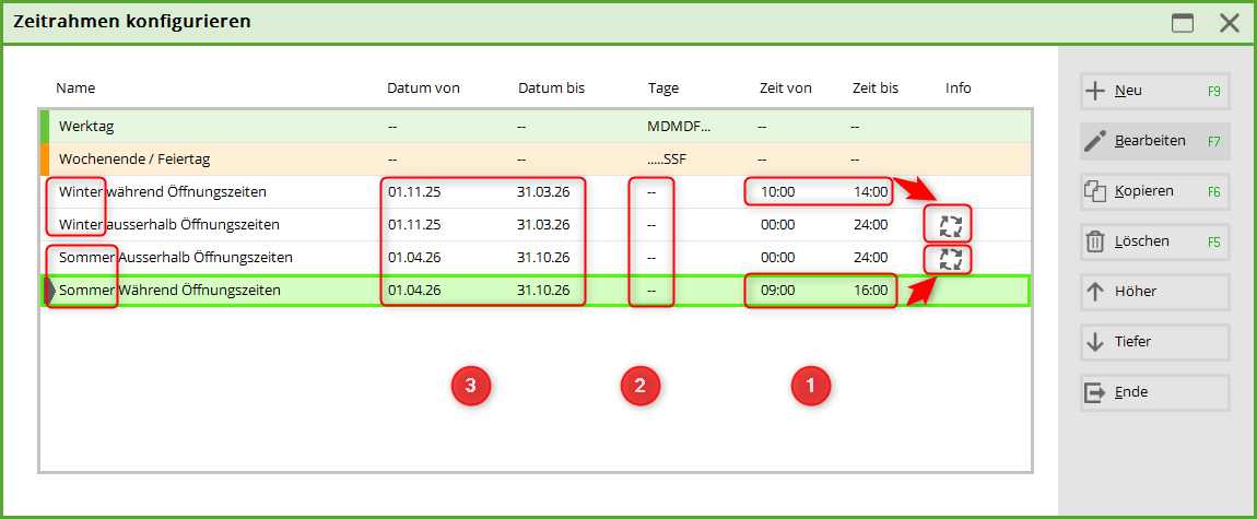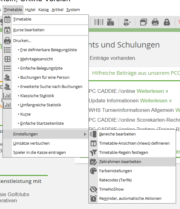 Timetable - Einstellungen - Zeitrahmen bearbeiten