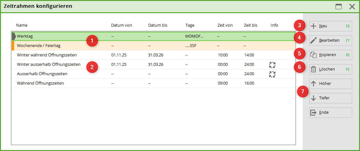 Timeframe - Zeitrahmen konfigurieren