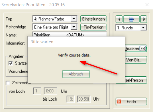 :!: Es ist dabei wichtig, dass Sie jeweils VOR dem Scorekartendruck der nächsten Runde das bisherige Zwischenergebnis drucken (Bildschirmdruck reicht)