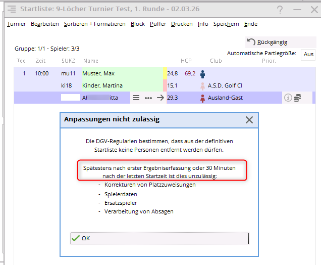 Wenn die Spieler schon gestartet sind oder bereits Ergebnisse erfasst worden sind, sind einige Änderungen nicht mehr möglich: