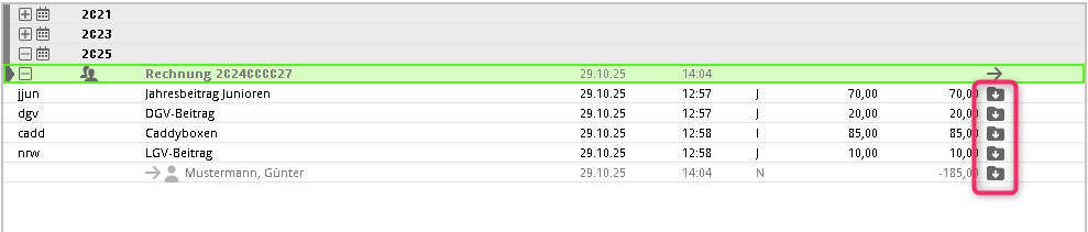 Wenn Sie eine Gebühr berechnen wollen, wählen Sie einen Artikel, den Sie vorher angelegt haben. Sollte sich der Betrag des Artikels ändern, können Sie diesen über Betrag (optional) ändern. Anschließend sieht das Kunden-Konto z.B. so aus: