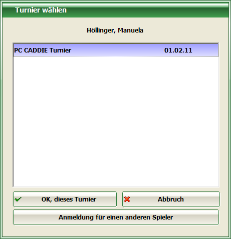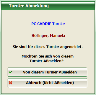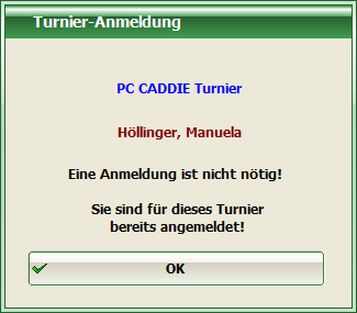 In the event that a person is already registered for a tournament, PC CADDIE recognises this and reports it.