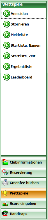 This module allows golfers to register and deregister for tournaments at the terminal or to view or print start and result lists. This option requires that the corresponding competition has been installed beforehand.