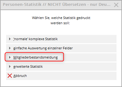 Please call up the menu item under Contacts/Print/Statistics and select the option Membership report.