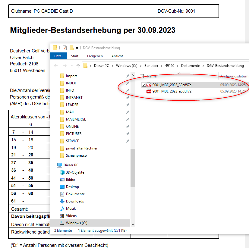 It is necessary to send an e-mail to the DGV with the PDF automatically created by PC CADDIE. As a representative of the club, you can be sure that only the transmission that you have checked and sent will be used by the DGV.