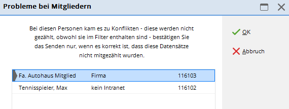If golf members are listed here who should be transferred to the DGV Intranet, click on „Cancel“ and check their settings first.
