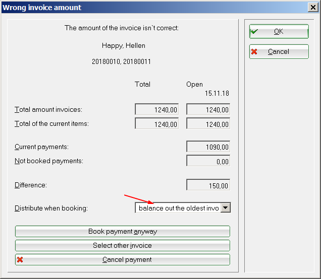 If the total payment of an invoice does not exactly match the invoice total, you can currently allocate exactly whether, for example, one invoice has been paid in full and a second invoice only partially.