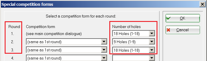 Here is how it works: ⇒Different number of holes in multi-round competitions