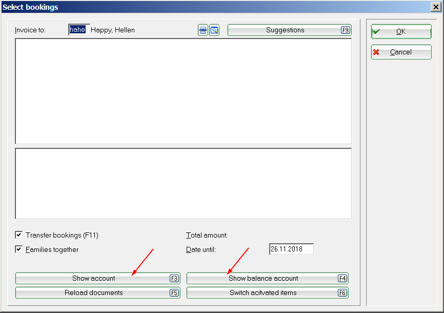 If you click on „ACCOUNT“ for a person in the cash register (possible for restaurant and secretarial cash register), there is no intermediate view and you are directly here: