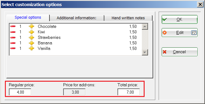 e.g. ice cream cups can be organised directly with all special requests, the printed receipt has all the information.