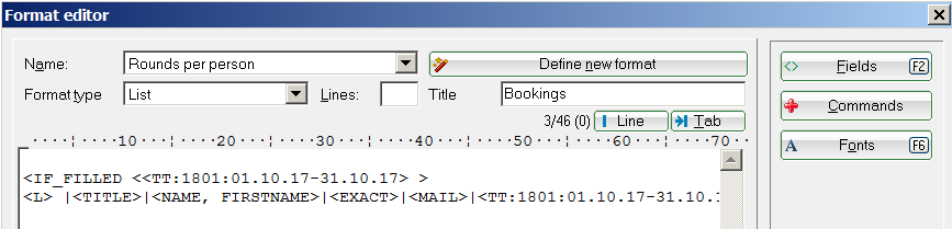 So that you can always see as much information as possible about the start time bookings directly, set up a timetable view with the 4 players one below the other (1 line per booking):