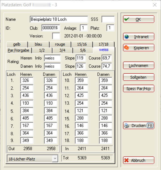 It is now possible to name the tee colours yourself. However, the tee colours should still be recognisable, e.g. you can change RED → PINK RED. It is not permitted to enter GREEN in the position for RED.