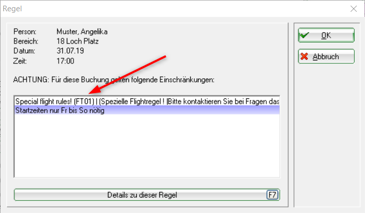 If a warning is activated, online no Instead, the person making the booking receives the customer information that is displayed in the description or under point 8.