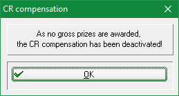 Due to the change in 2019, it was subsequently discussed with the DGV regulations department that only the CR equalisation points will be printed and displayed if they have an influence on the awarding of gross prizes. A CR equalisation has no other purpose! Therefore, a CR equalisation will only be displayed for the winners if it has been applied.
