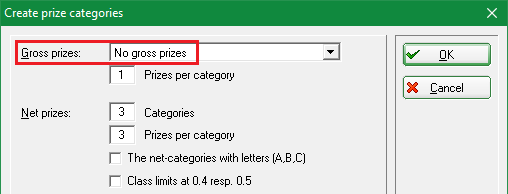 In the prizes, „double prize exclusion“ is set for both gross and net, which means that the prizes are awarded in this order: