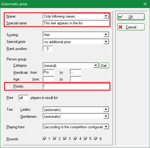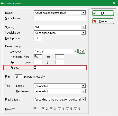Do you need a prize for very specific tournament participants? Then simply prioritise them individually in the player editor, e.g. with „Z“, and you're ready to go.