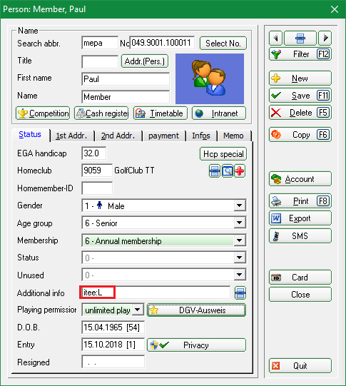 The selected tee colour is then directly transferred to the tournament and looks like this in the person editor: