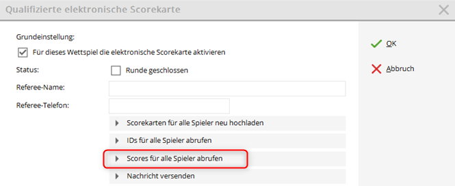 You have the option of clicking on the electronic scorecard directly when entering the results of the individual players … this is rather unnecessary in normal operation.