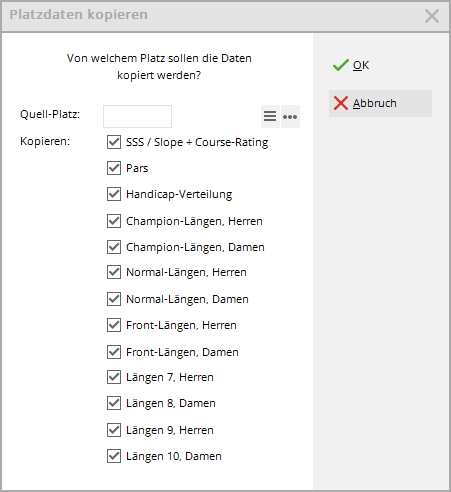 Confirmez en cliquant sur OK POUR CONTINUER. Vous pouvez maintenant apporter des modifications individuelles aux longueurs, aux pars ou à la répartition des consignes dans les données du nouveau terrain créé. Donnez également un nom à votre parcours copié, par exemple „Terrain de jeu“.