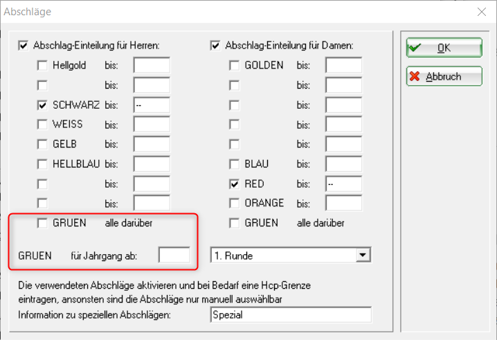 Pour le départ VERT, il existe (pour les juniors) une possibilité de réglage par année d'âge. Cette possibilité n'est active que pour un départ VERT mesuré dans les données du parcours !