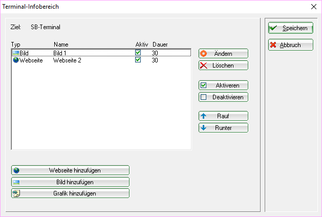 Dans la zone d'information supérieure du terminal, pour un terminal de self-service TRONDHEIM (Full HD en format vertical), vous avez la possibilité de faire afficher des informations individuelles - par exemple des images de sponsors ou même vos propres images selon vos besoins. Il est possible de configurer plusieurs images / informations textuelles pour la présentation du slider - vous déterminez vous-même la durée d'affichage respective.