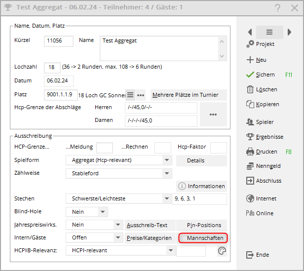 Comme il n'est pas possible de terminer un tournoi pour les formes de jeu à quatre, ni pour les „agrégats à quatre“, continuez à organiser les tournois avec la forme de jeu Agrégat hcpi pertinent pour le tournoi. Ainsi, vous avez également l'avantage de pouvoir établir un classement par équipe et un classement individuel.