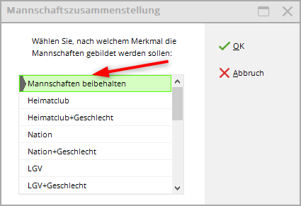 Particulièrement important : sélectionnez ici Conserver les équipes et confirmez avec OK.