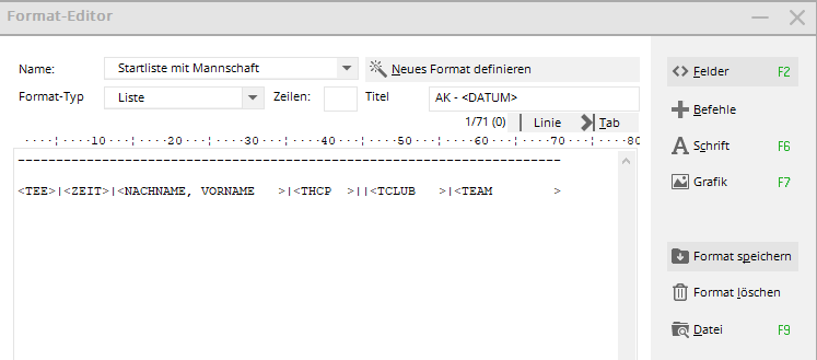 Si vous avez attribué des noms d'équipe, vous pouvez également les imprimer avec la liste de départ. Enregistrez une mise en page individuelle de la liste de départ.