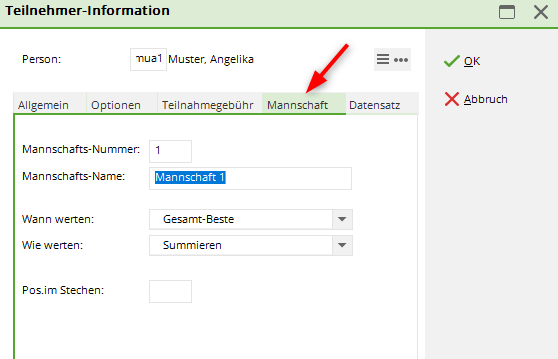 Le classement agrégé, dans lequel les résultats d'une paire sont additionnés, est traité avec l'onglet „Agrégation“. Classement par équipe à partir de en procédant comme suit :