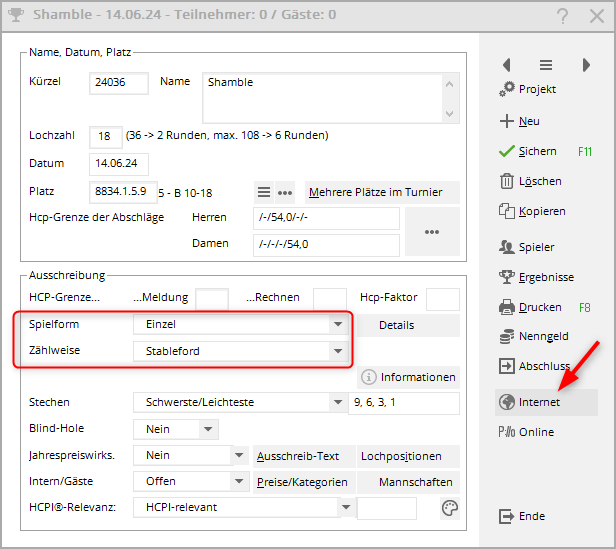 Quelle que soit la façon de jouer à l'extérieur, il y a 4 résultats individuels à la fin, alors créez le tournoi comme une forme de jeu „simple“ (comptage ou stableford) et faites des parties de 4 dans la liste de départ !