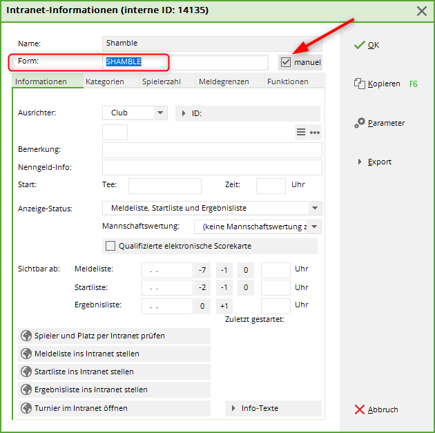 Cochez la case manuellement et nommez la forme de jeu individuelle comme vous le souhaitez :