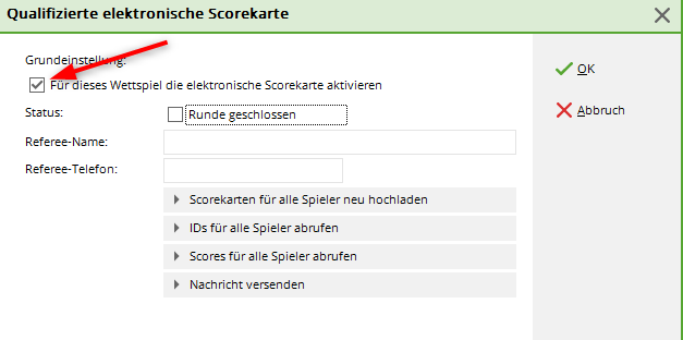 Veuillez sélectionner „Carte de score électronique qualifiée“, et activez ensuite cette fonction en cochant la case !