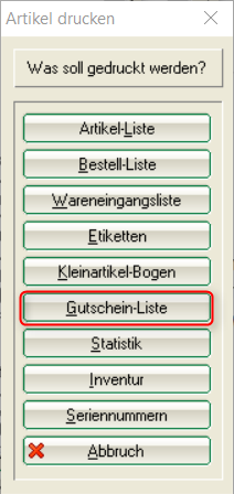 Vous trouverez dans PC CADDIE sous Chiffres d'affaires/types de contributions-articles/imprimer…/Listes/Liste des bons d'achat la liste complète des bons vendus et encaissés jusqu'à présent, y compris le solde restant et les annulations.
